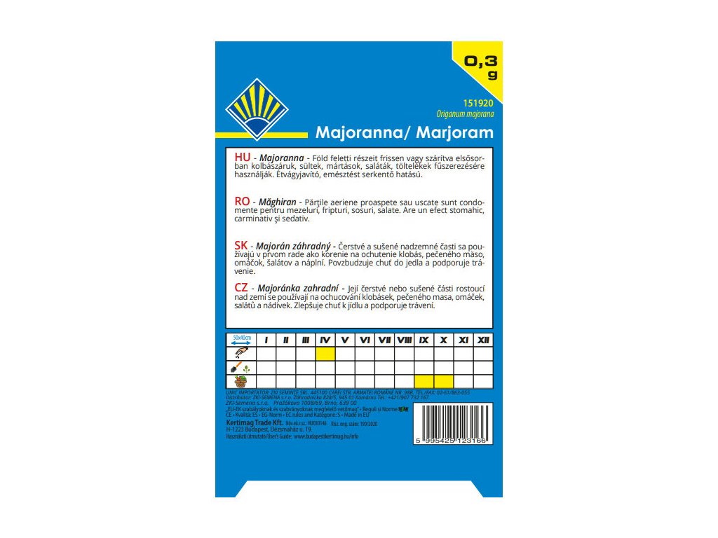Tradičná, výrazne aromatická bylinka vyžadujúca teplejšie polohy a hlinité pôdy v starej sile. Vysievame po štipkách - veľmi plytko, alebo priamo na povrch substrátu. Vňať zberáme na začiatku kvitnutia a sušíme v tieni, mimo dosahu priameho slnečného žiarenia. Čerstvé alebo sušené nadzemné zelené časti rastliny sa používajú v prvom rade ako korenie na ochutenie klobás, pečeného mäsa, omáčok, šalátov a náplní. Povzbudzuje chuť do jedna a podporuje trávenie.