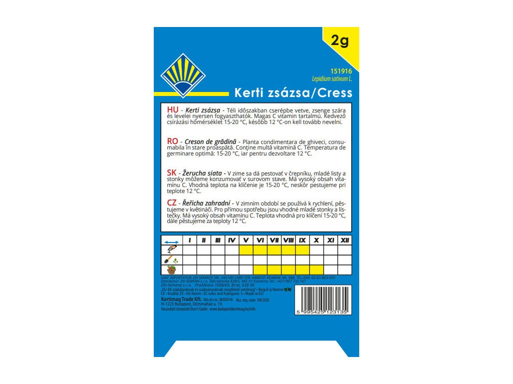 Rýchlo rastúca listová zelenina vhodná k celoročnému rýchleniu aj na pestovanie na záhone. Obsahuje vysoké množstvo vitamínov A a C, aj aromatické látky dodávajúce jej typickú vôňu a chuť. Rýchlite na miskách s buničitou vatou, kde vysievajte "nahusto" na povrch. Pri izbovej teplote zbierajte klíčne rastlinky za 10 - 14 dní jednorazovo zrezaním. Môžno vysiať aj na záhon a žať väčšie rastliny s pravými listami.